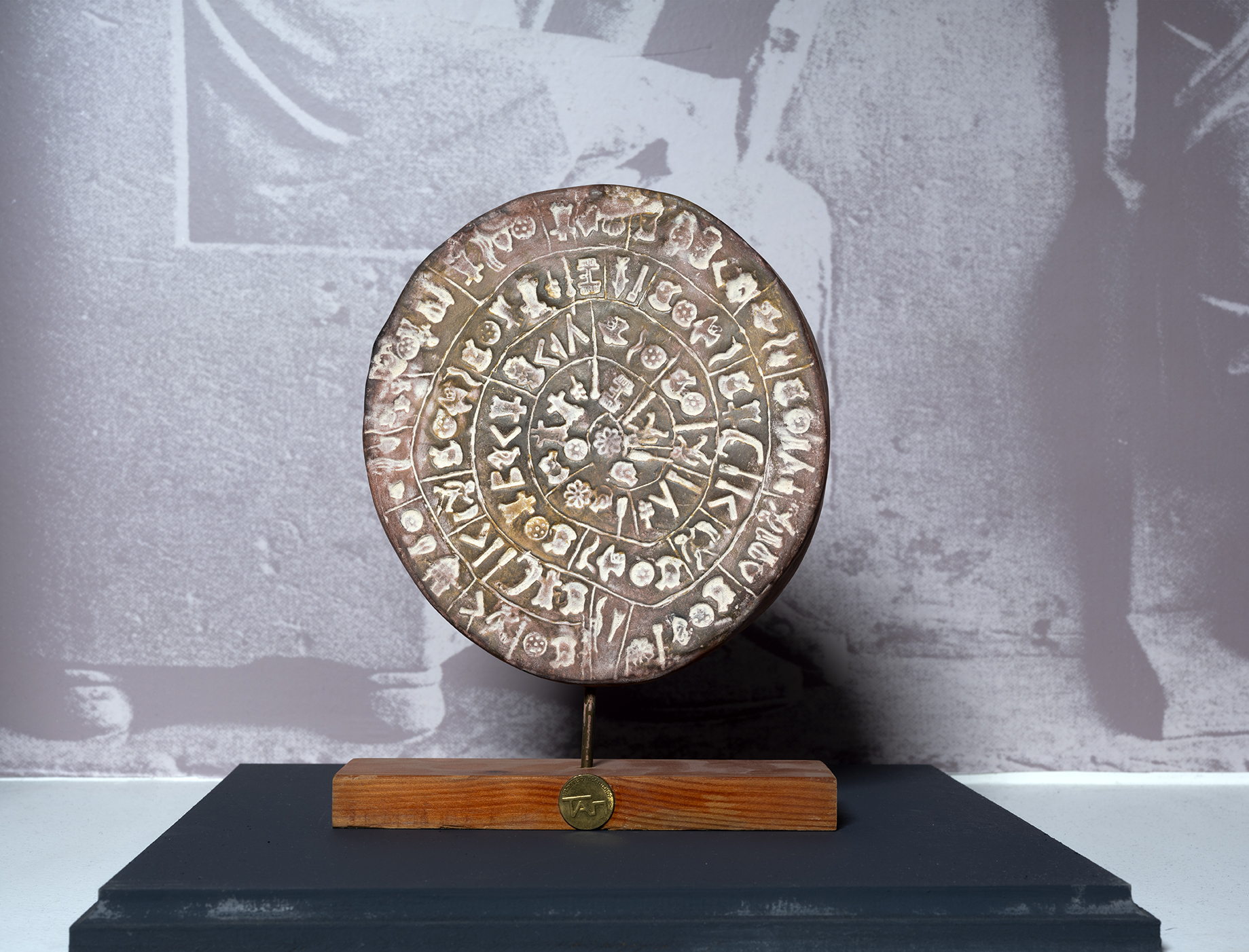 Πρόκειται για ένα πήλινο δίσκο από το ανάκτορο της Φαιστού που σήμερα βρίσκεται στο Μουσείο Ηρακλείου. Στις δύο πλευρές του φέρει αποτυπωμένα με σφραγίδα σημεία ιερογλυφικής γραφής σε σπειροειδή διάταξη. Χρονολογείται στη Νεοανακτορική εποχή, γύρω στα 1700-1600 π.Χ. Ο δίσκος της Φαιστού είναι το αρχαιότερο γραπτό μνημείο της μινωικής Κρήτης. Πρόκειται για ένα δίσκο από ψημένο πηλό που φέρει και στις δύο πλευρές του μια μέχρι σήμερα μη κατανοητή επιγραφή. Το μοναδικό αυτό εύρημα βρέθηκε το 1908 μέσα σε ένα κτιστό διάχωρο της βόρειας πτέρυγας του ανακτόρου της Φαιστού. Στο ίδιο στρώμα με το δίσκο βρέθηκαν ευρήματα προερχόμενα από διάφορες εποχές, που δυσκολεύουν την ακριβή χρονολόγηση του σημαντικού αυτού ευρήματος. Παρ' όλες όμως τις στρωματογραφικές ασάφειες, θεωρείται σήμερα βέβαιο ότι ο δίσκος της Φαιστού χρονολογείται στο τέλος της Μεσομινωικής περιόδου, δηλαδή λίγο πριν το 1600 π.X. Το κείμενο του δίσκου αποτελείται από μία σειρά συμβόλων που εντάσσονται σε συνεχόμενα τμήματα μιας ελικοειδούς ζώνης και διαβαζόταν με φορά από την περιφέρεια προς το κέντρο. Τα σύμβολα έχουν αποτυπωθεί στην επιφάνεια του πηλού, όσο αυτός ήταν ακόμη νωπός. Η διάταξη του κειμένου είχε προσχεδιαστεί έτσι ώστε να χωρέσουν όλα τα σύμβολα στον περιορισμένο χώρο της επιφάνειάς του. Στη δεύτερη πλευρά του δίσκου συνεχιζόταν το κείμενο της πρώτης. Ανάμεσα στα έντυπα σύμβολα διακρίνονται απεικονίσεις ανθρώπινων μορφών και αντικειμένων αλλά και απλά γραμμικά σύμβολα. Η επιγραφή αποτελείται από 242 σημεία που εντάσσονται σε 61 ομάδες. Μερικά από αυτά επαναλαμβάνονται αρκετές φορές. Ο αριθμός των συμβόλων είναι 45 αλλά υπολογίζεται ότι η γραφή στην οποία γράφτηκε το κείμενο του δίσκου διέθετε τουλάχιστον 60 διαφορετικά σύμβολα. Σύμφωνα με τις τελευταίες έρευνες η επιγραφή του δίσκου αντιπροσωπεύει ένα απλό συλλαβικό σύστημα. Το σύστημα γραφής του δίσκου της Φαιστού δεν παρουσιάζει συγγένεια με τις μεταγενέστερες γραφές της μινωικής Κρήτης. Η ομοιότητα μερικών ιδεογραμμάτων του δίσκου με ορισμένα στοιχεία της ιερογλυφικής και των γραμμικών γραφών φαίνεται ότι είναι τυχαία. Αντίθετα, η ομοιότητα ορισμένων συμβόλων με χαρακτηριστικά εικονιστικά σύμβολα της παλαιοανακτορικής τέχνης, όπως ο ναυτίλος, το πλοίο, ο ρόδακας και οι κεφαλές αίλουρων, υποδεικνύει μία πολιτιστική συνάφεια της γλώσσας του δίσκου με το μινωικό πολιτισμό. Από την ανακάλυψη του δίσκου της Φαιστού έως σήμερα έχουν γίνει αναρίθμητες προσπάθειες ερμηνείας και αποκωδικοποίησης του κειμένου του. Όλες όμως οι προσπάθειες αποκρυπτογράφησης αποδείχθηκαν άκαρπες και σήμερα μόνο μερικές διαπιστώσεις μάς κατευθύνουν στο δρόμο προς την ερμηνεία της γραφής του. Μερικές θεωρίες ερμήνευσαν το δίσκο όχι ως επιγραφή αλλά ως ένα ασυνήθιστο εργαλείο ή σκεύος, ενώ πολλές ήταν οι λύσεις που έχουν προταθεί από το χώρο της επιστημονικής φαντασίας. Ανάμεσα στις διάφορες ερμηνείες που διατυπώθηκαν υποστηρίχθηκε ότι ο δίσκος δεν είναι κρητικό προϊόν, αλλά προέρχεται από έναν άλλο πολιτισμό σύγχρονο με το μινωικό. Τα κύρια επιχειρήματα αυτής της θεωρίας ήταν η μοναδικότητά του και το γεγονός ότι μερικά από τα σύμβολά του προέρχονται από διαφορετικούς πολιτισμούς της δεύτερης χιλιετίας. Κάποια άλλα όμως από τα σύμβολα του δίσκου συναντώνται και στην ιερογλυφική γραφή, την πρώτη γραφή της μινωικής γλώσσας, 