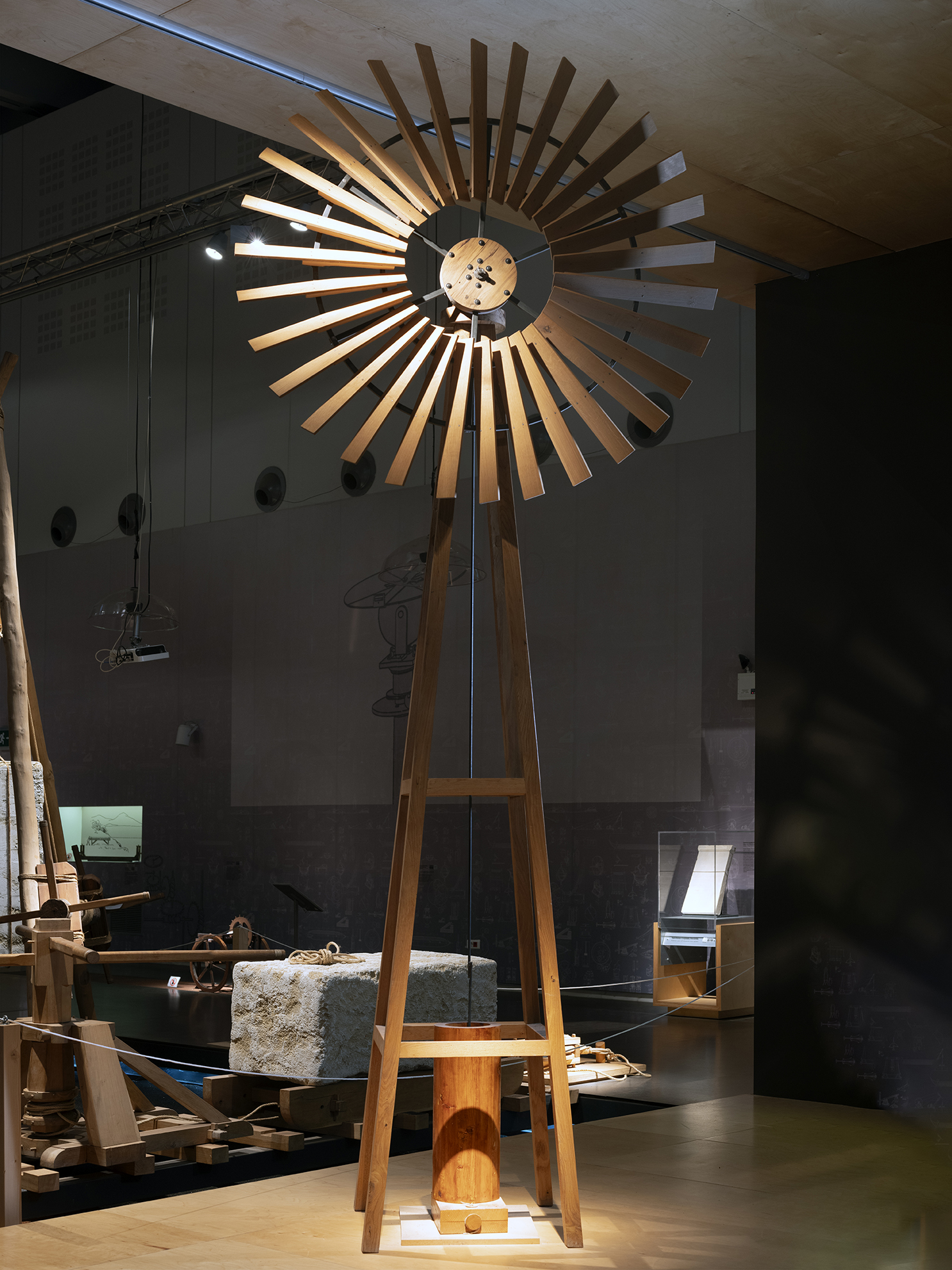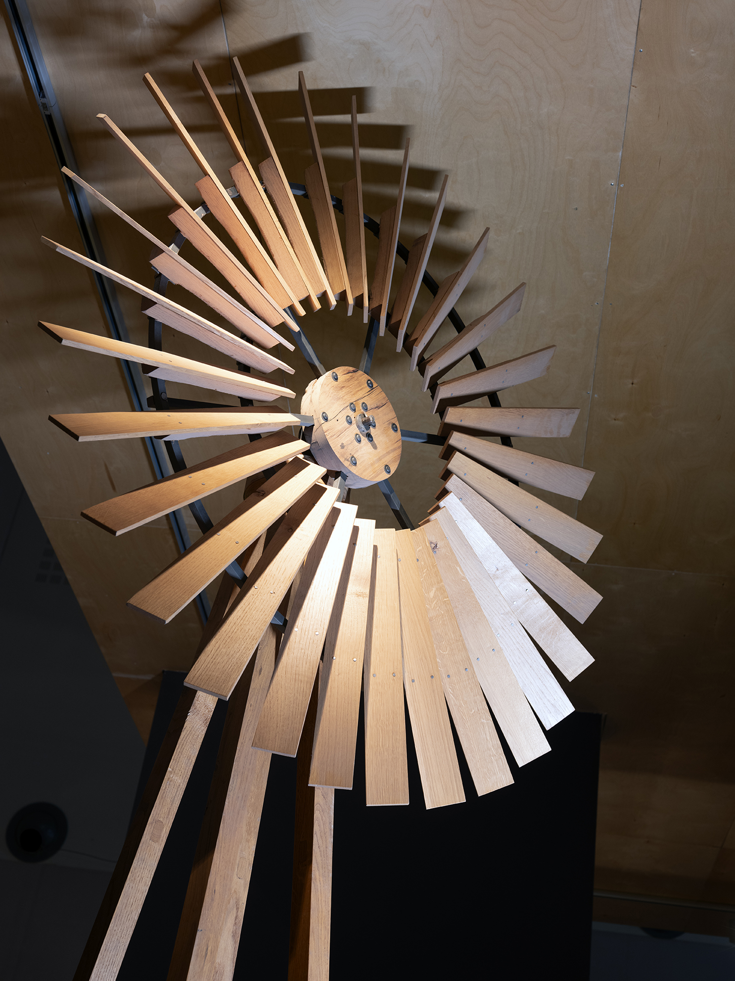 Ο Ήρων στο έργο του Πνευματικά (1ος αιώνας μ.Χ.) περιγράφει την κατασκευή υδραύλεως στην οποία έχει αντικαταστήσει την χειρονακτική κινητήρια δύναμη για την λειτουργία της αντλίας με κίνηση από μηχανισμό με ανεμούρια. Δυστυχώς η περιγραφή της μετατροπής της περιστροφικής κίνησης σε παλινδρομική με σκυτάλια είναι σχετικά ατελέσφορη. Το έκθεμα που παρουσιάζεται είναι μεν λειτουργικό "αυθαιρετεί" όμως ως προς την χρήση απλού τύπου στροφάλου. Σε κάθε περίπτωση είναι αξιοσημείωτο το γεγονός ότι ο Ήρων συνέλαβε την ιδέα που οδήγησε στους ανεμόμυλους και τις ανεμογεννήτριες.