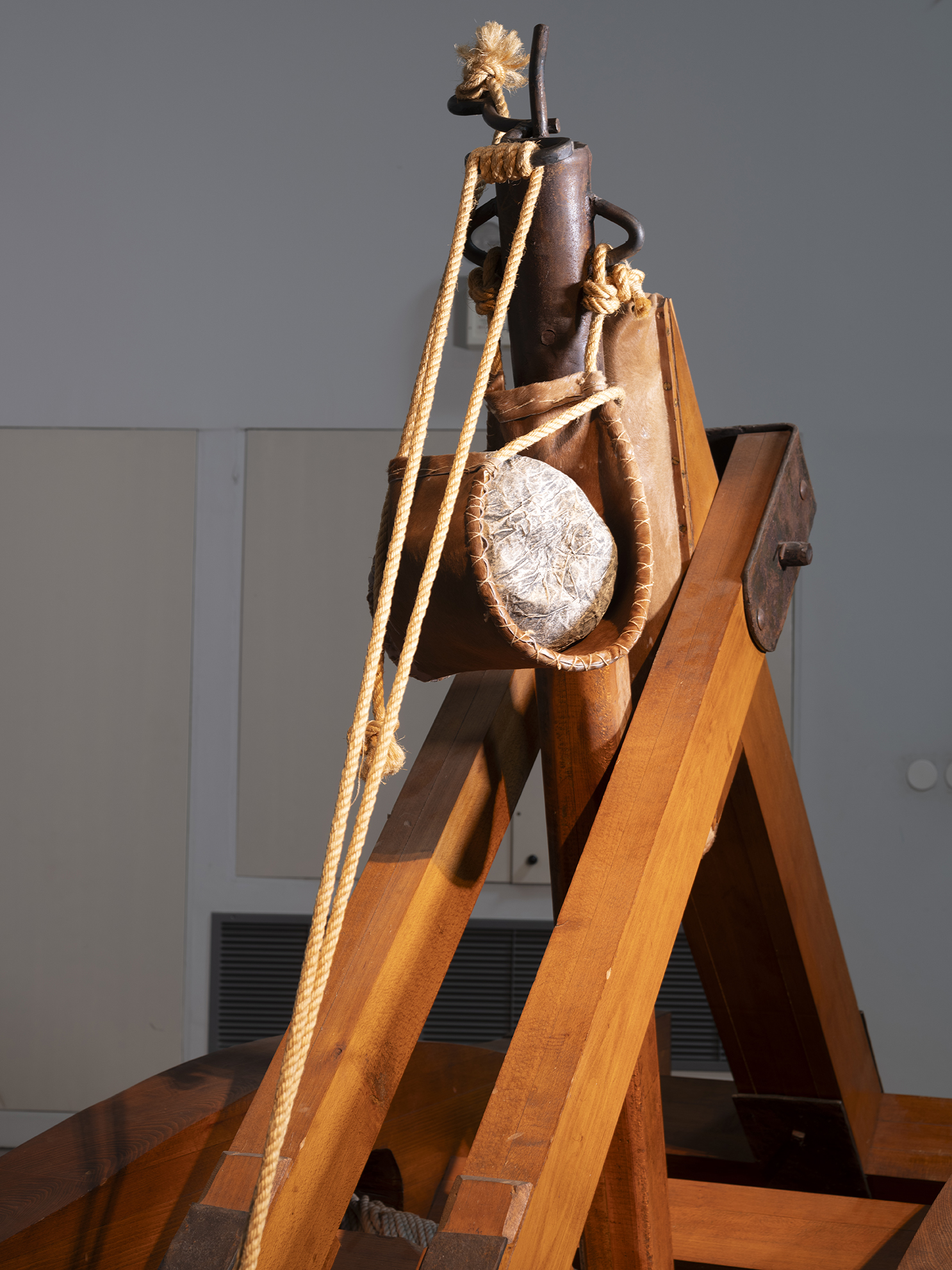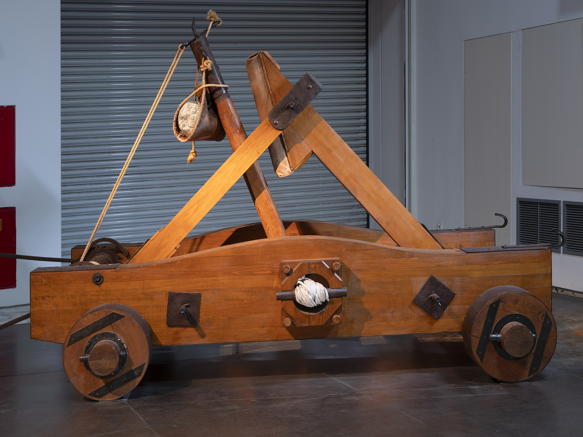 Οι αρχαίοι μηχανικοί Φίλων, Ήρων και Βιτρούβιος (10, X) περιγράφουν στα έργα τους βλητικές μηχανές και πολεμικά όργανα με τα οποία ήταν εξοπλισμένα τα στρατεύματα της εποχής τους. Στα όπλα αυτά ανήκει και ο καταπέλτης. Πρόκειται για πολεμικό μηχάνημα της κατηγορίας των "αφετηρίων οργάνων" ικανό να εκτοξεύει μεγάλα βέλη, ακόντια, πέτρες και αργότερα το υγρό πυρ σε μεγάλη απόσταση και με ισχυρή διατρητική δύναμη. Προϊόν της προόδου της μηχανικής, εφευρέθηκε στις Συρρακούσες το 399 π.Χ. από τους μηχανικούς που συγκέντρωσε τότε ο Διονύσιος ο Πρεσβύτερος και τους ανέθεσε να ενισχύσουν με νέο όπλο το πολεμικό του δυναμικό στις παραμονές της εκστρατείας που σχεδίαζε εναντίον των Καρχηδονίων. Χρησιμοποιήθηκε για πρώτη φορά με επιτυχία στη μάχη στο λιμάνι της Μοτύης, όπως αναφέρει ο Διόδωρος. Αργότερα διαδόθηκε και στην Ελλάδα. Βαθμιαία εξελίχθηκε σε διάφορους τύπους. Τα κύρια μέρη του καταπέλτη είναι: ο ορθοστάτης, ξύλινη ισχυρή δοκός, κατακόρυφα τοποθετημένη, που στηριζόταν σε βάση τριγωνική ή τετράγωνη, το τόξο το οποίο σχημάτιζαν δύο ξύλινοι βραχίονες, που λεγόταν τόνοι, προσδεδεμένοι πάνω στον ορθοστάτη και μια χορδή κατασκευασμένη από τρίχες ή τένοντες βοδιών, κατάλληλα επεξεργασμένους, η σύριγξ, ξύλινη δοκός, με πλατύτερη επιφάνεια τοποθετημένη κάθετα προς τον ορθοστάτη και στηριζόμενη με το ένα άκρο της πάνω σε αυτός και προς το τέλος του άλλου άκρου της, σε ορισμένη απόσταση προς τα πίσω, πάνω σε ξύλινη δοκό. Τέλος η κατακλείδα και οι στρόφαλοι, τοποθετημένοι στο πίσω άκρο της σύριγγος. Το πάχος του τόνου προσδιόριζε το μέγεθος των άλλων στοιχείων του καταπέλτη και ήταν η βάση για τον υπολογισμό τους κατά την κατασκευή. Το βεληνεκές ήταν αρχικά 200 μ. και αργότερα έφτασε τα 750 μ. Το βάρος τους ποίκιλλε μεταξύ 40 και 300 κιλών και ανάλογα με αυτό χαρακτηριζόταν σε μείζονες και ελάσσονες. Τους πρώτους τους χρησιμοποιούσαν μόνο οι πολιορκητές, τους δεύτερους και οι πολιορκούμενοι επειδή μπορούσαν να τους ανεβάζουν και να τους τοποθετούν πάνω στα τείχη. Ο καλός χειρισμός του καταπέλτη, ώστε να εξασφαλίζεται το επιθυμητό βεληνεκές και να γίνεται καλή σκόπευση απαιτούσε ειδική εξάσκηση και η "καταπελταφεσία" ήταν αγώνισμα για νέους. Από την εποχή του Διονυσίου των Συρρακουσών (430-367 π.Χ.), μέχρι την εποχή του Μ. Αλεξάνδρου η προσφορά και η ζήτηση βλητικών μηχανών, δηλ. καταπελτών, ήταν ιδιαίτερα μεγάλες. Κατά τον 2ο αι. π.Χ. στην Αλεξάνδρεια, η παραγωγή οδήγησε στην μαθηματική τυποποίηση των μεγεθών τους, με βάση το ζητούμενο βάρος λίθου ή το μήκος του βέλους για το οποίο προοριζόταν. Ο Φίλων είχε προτείνει την αντικατάστασή τους από μεταλλικά ελατήρια και τύμπανα με συμπιεζόμενο αέρα.
