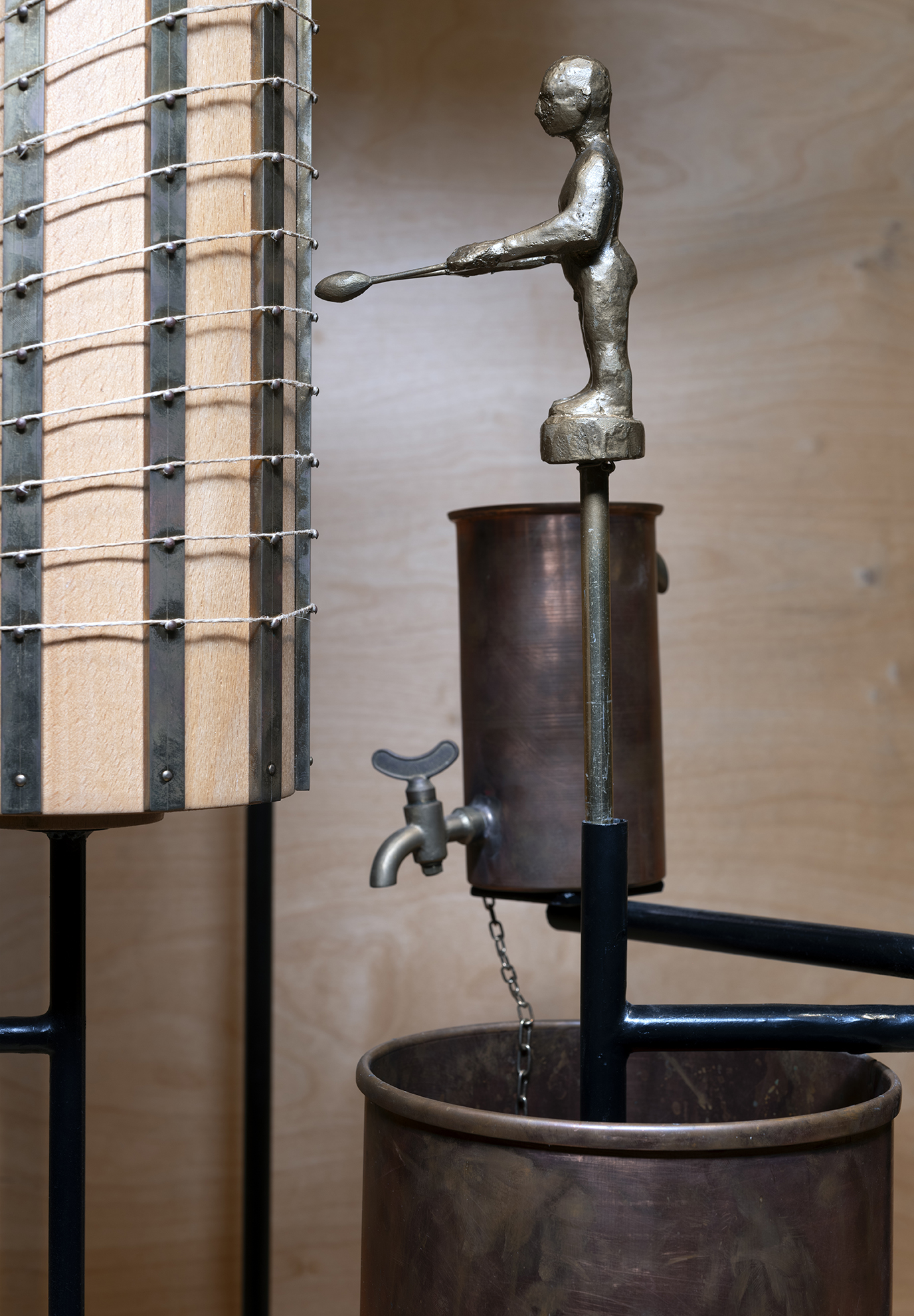 Από το δελτίο εκθέματος: "ο Κτησίβιος (308-246 π.Χ.) ήταν ο πρώτος από τη σχολή μηχανικών της Αλεξάνδρειας που κατασκεύασε υδραυλικό ωρολόγιο ως μετεξέλιξη των αρχαιότερων υδραυλικών ωρολογιών τύπου κλεψύδρας. Περιγραφή του ωρολογίου αυτού βρίσκεται στο έργο του Βιτρουβίου "Περί Αρχιτεκτονικής" κεφ 9, 8, 5-7: νερό ρέει με σταθερή ροή από ακροφύσιο μέσα σε μεγάλο δοχείο και ανυψώνει πλωτήρα. Στον πλωτήρα είναι στερεωμένο αγαλματίδιο που λειτουργεί ως δείκτης και δείχνει τις ώρες πάνω σε κατακόρυφο τύμπανο με χαράξεις κάθετες για τους μήνες και εγκάρσιες, όχι όμως παράλληλες, για τις ώρες, έτσι ώστε να συνυπολογίζεται η μεταβολή της διάρκειας των ωρών ανά μήνα.